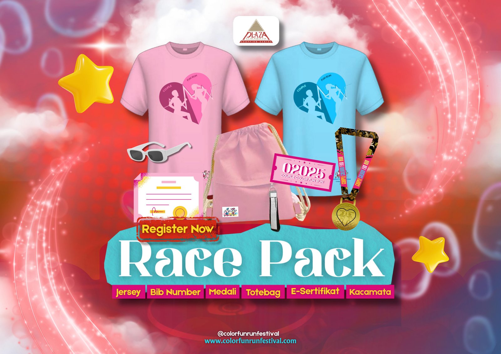 Dengan mendaftar sebagai peserta di COUPLECOLORFUNRUN 2025, artinya peserta telah sepenuhnya diterima dan akan mematuhi peraturan dan ketentuan.